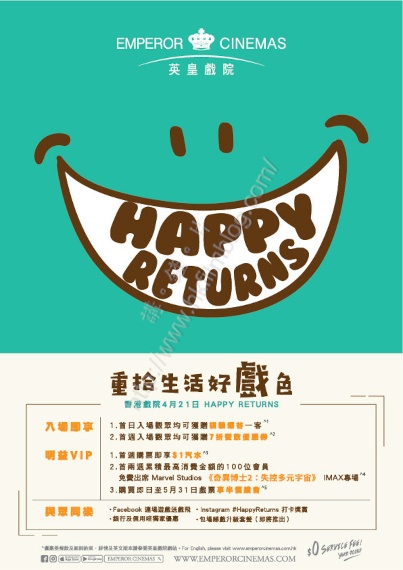 隨著政府於昨天正式宣佈全港戲院於四月二十一日重開,也令到不同院線整裝待發,當中除了招聘人手應付法例要求外,同時也作出推廣優惠,希望可以吸引觀眾回到戲院,當中英皇戲院便提供了一連串優惠。
