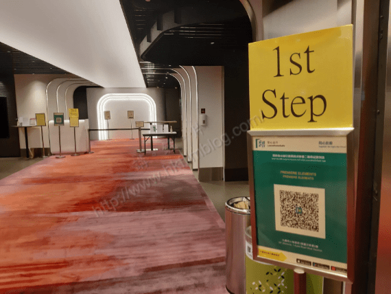 上圖所見,便是「講。鏟。片」情報人員日前於九龍站Premiere Elements戲院所攝,可以看到該戲院在戲院大堂入場的路線貼一黃底黑字的指示,當中寫上兩個步驟,就是先請觀眾以「安心出行」掃描場所的二維碼。而第二步則是讓戲院方面掃描疫苗接種二維碼。