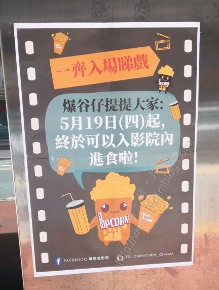 隨著香港的新型冠狀病毒疫情從高峰大幅回落,政府也於明天起進一步放寬社交距離措施,當中除了戲院的入座上限由現時的五成放寬至八成半外,也同時可以容許觀眾放戲院映廳內飲食,而戲院也對此隆重其事。
