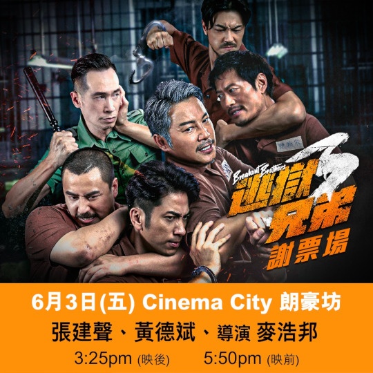《逃獄兄弟3》為整個系列電影最後一集,電影的演員陣容包括譚耀文、張建聲、栢天男與黃德斌,還有第二集加入的吳卓羲與本集加入的陳豪,至於首兩集當主角的張繼聰則作客串。有意參觀賞謝票場次的觀眾,敬請把握機會從速購票好了。