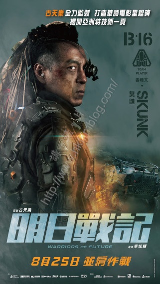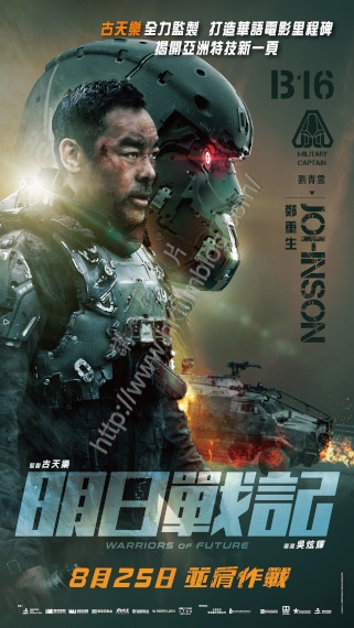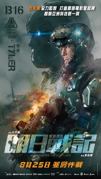 與此同時,天下一發行亦發佈了三款《明日戰記》人物海報。第一款以古天樂作為主題,當中上方寫上「古天樂全力監製,打造華語電影里程碑,揭開亞洲特技新一頁」,而片中他飾演空軍隊長泰來,可以看到他穿上盔甲拿槍的造型,上方寫上「古天樂全力監製,打造華語電影里程碑,揭開亞洲特技新一頁」。