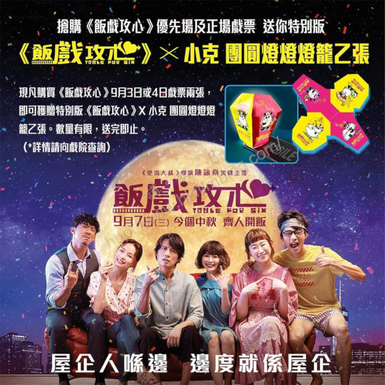 上圖所見,便是電影《飯戲攻心》提供的最新優惠,觀眾凡購買《飯戲攻心》優先場及正場戲票,可以獲得迷你特別版《飯戲攻心》X小克團圓燈燈燈籠一個,詳情要向戲院查詢。當然,這些迷你燈箱數量有限,送完即止。