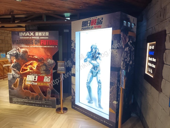上圖所見,便是「講。鏟。片」情報人員日前於尖東站K11 Art House所攝,可以看到戲院在《明日戰記》宣傳紙板的右方,擺放了另一個3D電子宣傳裝置,並且展示了一款戰士,並且以3D投射的方式來展現。