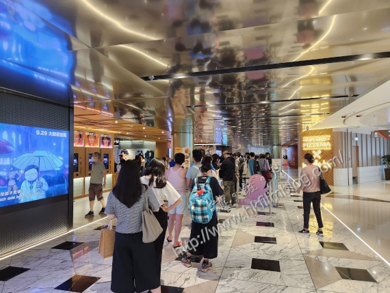 上圖所見,便是「講。鏟。片」情報人員於今天早上十時半在上映戲院之一的Premiere Elements戲院大常所攝,可以看到在售票處排上約數十人的人龍等候戲票開售,而現場看到秩序良好,並且設有排隊欄。