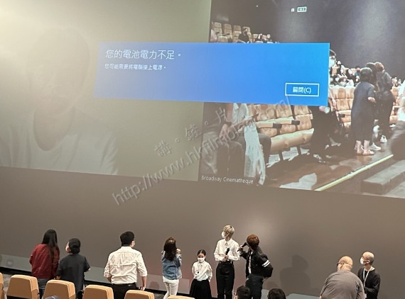 可是,就在首場放映後的答問環節尾聲,當主持希望在場的演員與監製跟觀眾合照時,銀幕卻突然打出「您的電池電力不足」的情況,而導演笑言他自己電力十足。似乎也許是因為那部手提電腦用得太盡,最終還是需要接手電池,才讓那個指示消失。看來即使事前準備很多也好,也還是出現人算不如天算的情況。