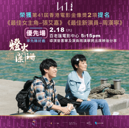 第四十一屆香港電影金像獎剛於昨天公佈了提名名單,而部分待作正式發行的電影或公映中的電影也把握這個機會。當中安樂發行、陳心遙監製、曾憲寧執導的《燈火䦨珊》將於下周末再度推出優先場。