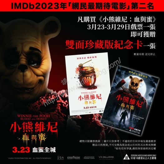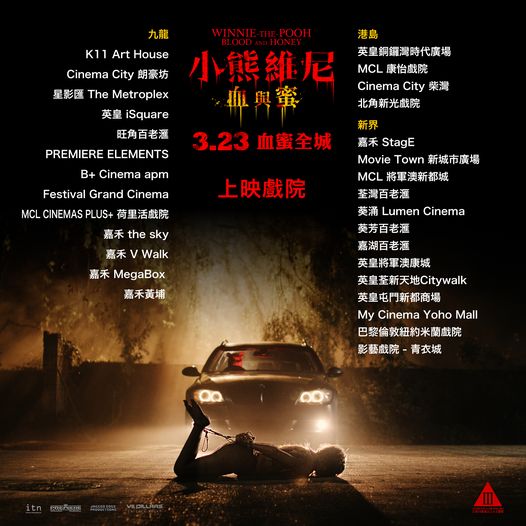 上圖所見,便是VII Pillars發行的《小熊維尼:血與蜜》,電影原擬於本周四上映,並且獲得多家戲院安排上映。