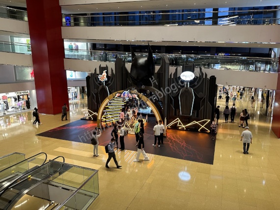 《閃電俠》相關專題展覽於太古城中心一期二樓舉行,可以看到在入口處牆身仿如是蝙蝠俠的帽的形狀。
