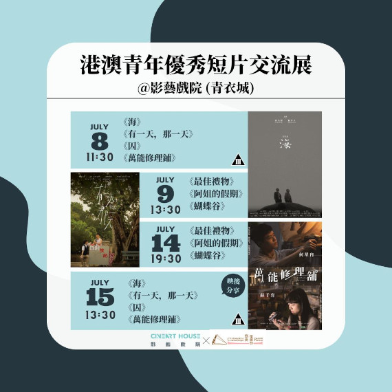 交流展將於七月八日起一連兩個星期的周末舉行。當中節目一安排於七月八日及十五日放映,節目二則安排於七月九日及十四日放映,當中七月十五日下午一時半的場次更設有映後分享環節。有意觀賞港澳青年優秀短片的觀眾,敬請留意其開售情況好了。