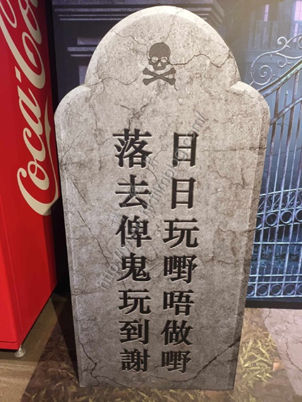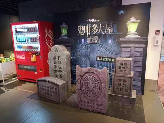 其實上圖所見的,就是迪士尼發行,將於八月三日上映的《鬼咁多大屋》宣傳字眼。這個墓碑式宣傳其實也有其他戲院看到英文版本,不過觀乎中文版本似乎更為有趣,用字也更為精準,也反映了電影宣傳本地化的重要性。