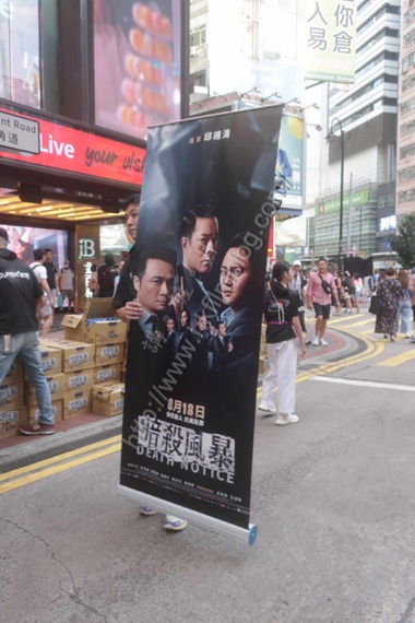 是次的派水活動,安排於星期六的下午在銅鑼灣東角道行人專用區舉行。工作人員先掛上了電影《暗殺風暴》的「易拉架」。