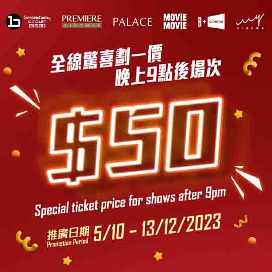 上圖所見,便是百老匯院線上周的通告,當中百老匯院線全線自十月五日至十二月十三日期間,全線於晚上九時後場次的票價繼續提供優惠價五十元。而旺角百老匯戲院更將晚上十一時後的午夜場票價下調至三十五元。