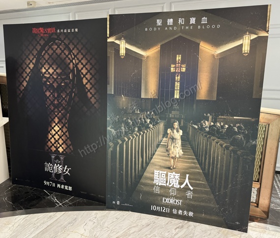 兩部電影在宣傳上,均用上教堂作為背景,而且同樣以偏啡的色調出現,當中兩部電影均屬環球影業在香港發行,而且同樣是恐怖電影,未知是否StagE戲院的員工感覺電影質感相若的關係,也將其電影宣傳品放在一起,未知大家又有沒有興趣連看這兩部恐怖電影呢?