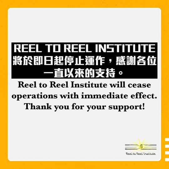 上圖所見,便是Reel to Reel Institute在其官方Facebook專頁的圖片,當中只寫出將於即日起停止運作,感謝各位一直以來的支持。然而,卻未有交代停止運作的原因。