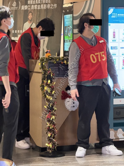 上圖所見,便是「講。鏟。片」情報人員於昨天下午時分在荃灣荃新天地二期的英皇戲院所攝,可以看到在入場處有三位職員身穿著紅色背心,而胸前寫上了一個數字,莫非這個數字的作用,就跟韓劇《魷魚遊戲》一樣乎?