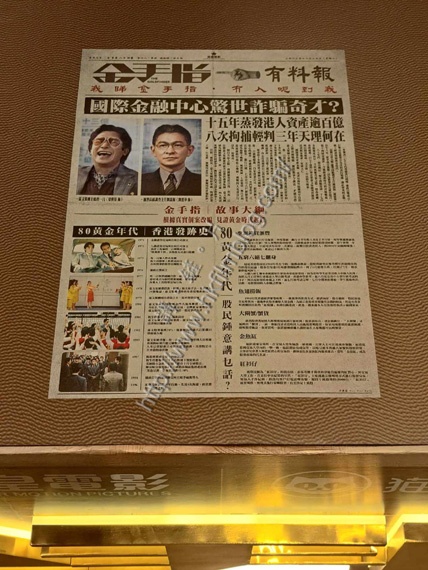 上圖所見,便是「講。鏟。片」情報人員日前於其中一家英皇戲院所攝,可以看到該戲院擺放了英皇發行、黃斌監製、莊文強執導,劉德華、梁朝偉與蔡卓妍主演的《金手指》宣傳品,宣傳品以仿如昔日報章的格式出現,並寫上「有料報」的字眼,而上方則以從右至左昔日排版模式顯示有關安件。而下方則描述八十年代片中主角陳一言的發跡經歷,而右方則看片中會看到的一些述描述。