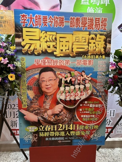 上圖所見,便是一部名為《易經風雲錄》電影,電影由潘藝倫執導,演員包括李居明、傅嘉莉、張秀文、李寄韻、吳麗珠、黎芷珊、江美儀、石詠莉與胡諾言。電影寫上「新光數碼戲院賀歲獨家公映」,並且安排於明天起上映。