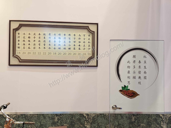 其中牆身掛上了不同款式糖水及售價,不過觀乎售價該不是六十年代的物價,右方還有紅豆的介紹。