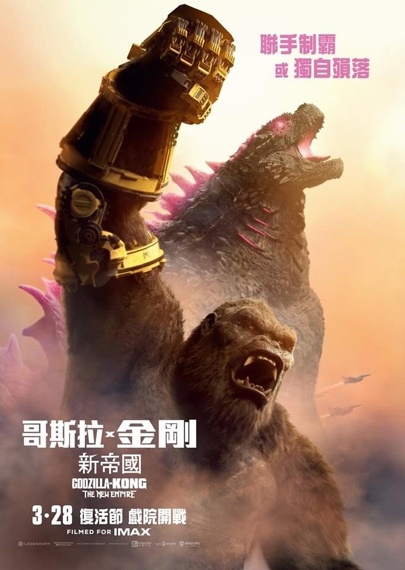本周的市場焦點在於環球發行的《哥斯拉x金剛:新帝國》與安樂發行、何國敏執導的《12怪盜》之爭,最終前者首天安排於60院映逾五百場下,以近三萬人次稱冠,每場平均人次達59,推算收入達230萬以上,反映觀眾對市場大片的渴求,觀乎周末可望再有家庭客源入場。而環球發行的動畫《功夫熊貓4》首天於57院映逾380場則以近萬三人次名列第三,每場平均人次達33,推算收入近80萬,看來復活假期可望吸納家庭客源。