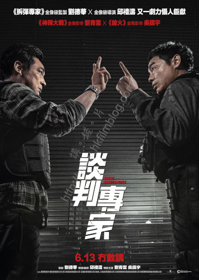 上圖所見,便是一部名為《談判專家》的電影,電影在港將由安樂發行。電影由劉德華監製、邱禮濤執導,並且以兩人在《拆彈專家》合作為賣之一。海報以兩位男主角劉德華與吳鎮宇為核心,並且寫上「6.13冇數講」以確定電影於六月十三日在港上映。