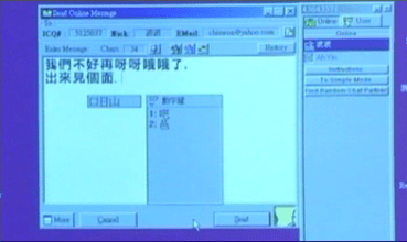這部電影如何貨真價實,就是真的I.C.Q.電腦畫面給大家看,而這個版本亦十分陳舊,是Windows 95或Windows 98版本的界面。