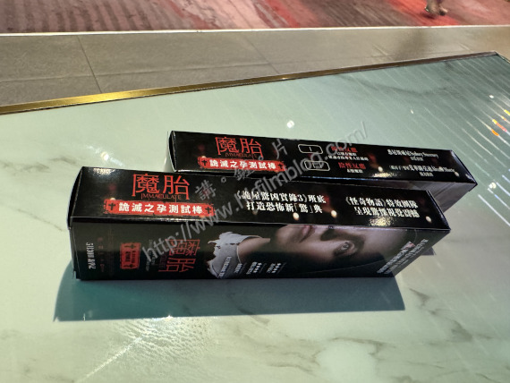 「驗孕棒」包裝的一方有著電影《魔胎》的海報,而另一方則寫上「身懷詭胎優先場」的字眼,可以看到內裡真的有一支仿如驗孕棒的東西。至於如何使用及有沒有人敢用,則是另一回事。