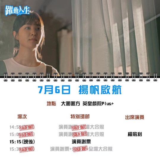 上圖所見,便有一部名為《躍動人生》的韓國電影,電影由裴斗理執導兼編劇,而演員陣包括少女時代成員權俞利、《美好世界》吉海妍、《孫子們的孩子》玄宇錫,以及《下一個素熙》沈熙燮,而海報寫上「07.06揚帆啟航」,意味電影將於七月六日在港上映。