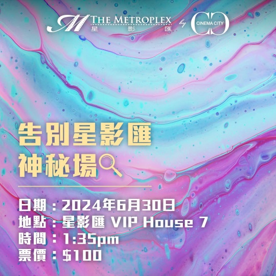 上圖所見,便是營運星影匯的Cinema City於昨天晚上的告示,星影匯將於六月三十日推出「告別星影匯神秘場」,該場將安排於當天下午一時三十五分假星影匯貴賓院七院舉行,而票價只需一百元。而該場戲票也迅即售罄。