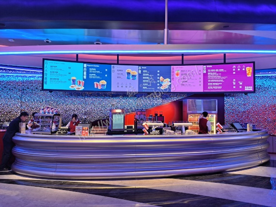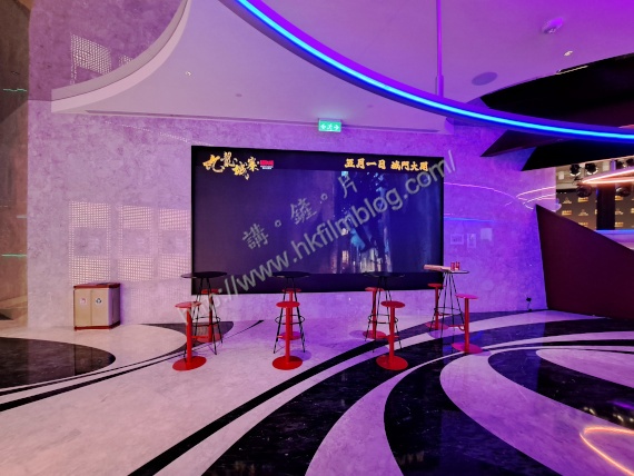 當中在小食部對面了設有高檯外,還有大型電視屏幕展示電影預告片段。