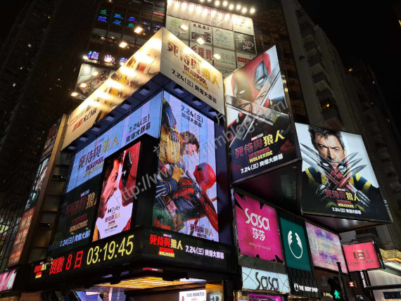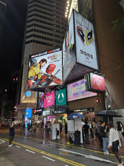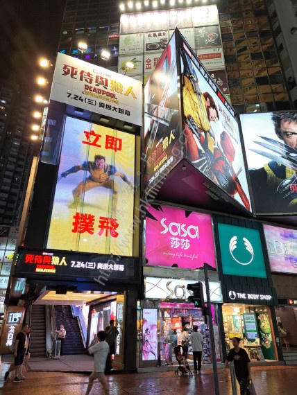 至於面向怡和街的一方,屏幕也有不同的顯示,先是顯示其電影海報。