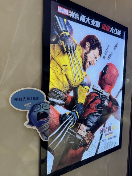 在市場不理想下,三部仍在上映電影仍在十大之中,當中迪士尼發行的Marvel電影《死侍與狼人》在第三周削場三成下,昨於58院映近410場錄得近七千人次,較上周四削半,每場平均人次則跌有17,惟以量取勝下,推算收入接近60萬,為電影於16天累積達3,860萬,看來要達五千萬仍需努力。