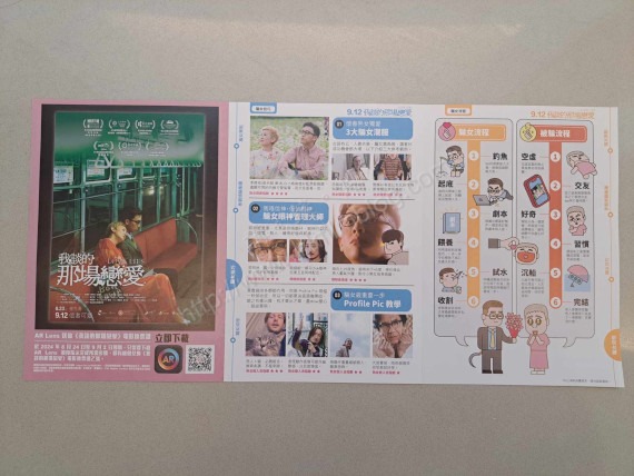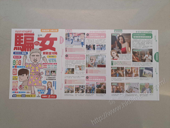 至於另一頁則出現騙女技巧與騙女流程,當中還有「騙女流程」與「被騙流程」。而左方則看到電影《我談的那場戀愛》的廣告。如斯的宣傳品,真的很有收藏價值。