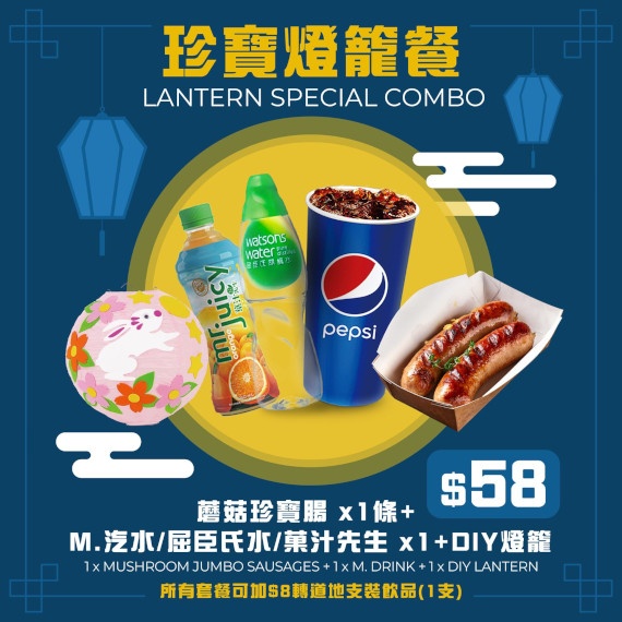 上圖所見,便是來自Cinema City的截圖,該院線將安排於荃灣愉景新城Candy Park by Cinema City推出「珍寶燈籠餐」,套餐包括了一條蘑菇珍寶腸、飲品一份與自製燈籠一個。當中飲品可選中杯裝汽水、屈臣氏水與菓汁先生,又或多付八元轉為道地支裝飲品。