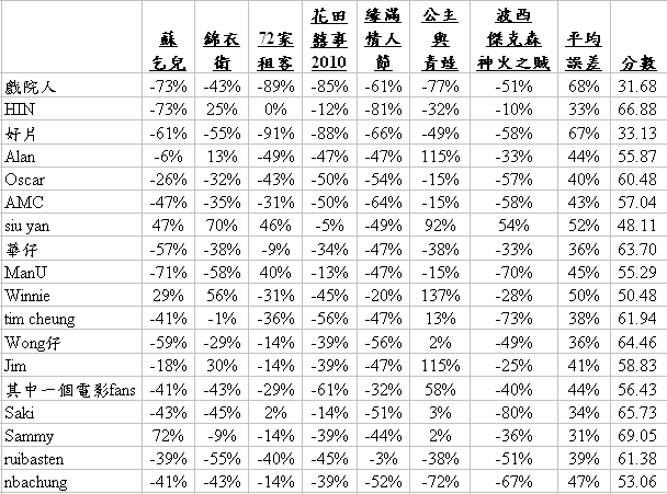 建議版主在公佈票房預測比賽時, 在參加者預測表內加一行是實際票房的, 方便看出2者的差距.