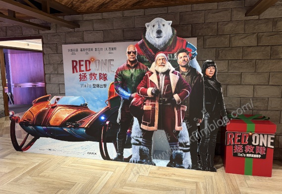 環球發行的華納電影《Red One拯救隊》已於上周四在港上映。而上圖所見,則是「講。鏟。片」情報人員日前於尖東站K11 Art House的戲院大堂所攝,可以看到該戲院擺放了這部電影大型立體設計宣傳紙板,除了雪車外還有片中一眾人物。