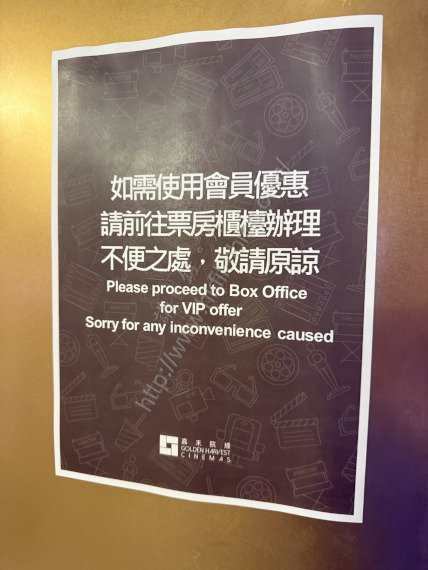 另一邊廂,則張貼了另一則通告,指如需使用會員優惠,需要到票房櫃檯辦理。