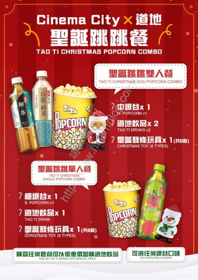 還有大約一星期左右便是到了聖誕時間,一般而言戲院也許會在戲院推出一些裝飾,但是推出聖誕主題套餐的例子倒是不多。當Cinema City今年便跟飲品品牌道地合作,推出了兩款「聖誕跳跳餐」。