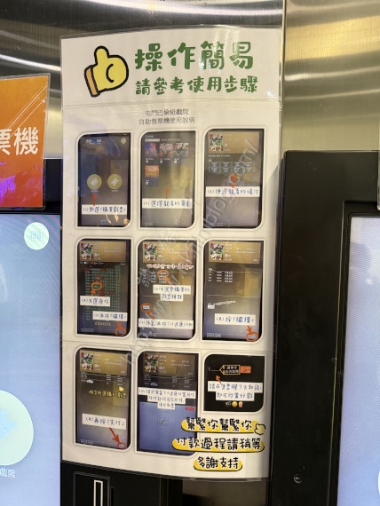 上圖所見,便是「講。鏟。片」情報人員日前於屯門巴黎倫敦紐約米蘭戲院大堂所攝,可以看到該戲院為觀眾提供了自助售票機使用說明。一共分為九個步驟,而且指示相當清晰,讓觀眾可以逐步來選取電影、日期、場次、座位,票價種類等,而最後則可使用八達通購票。