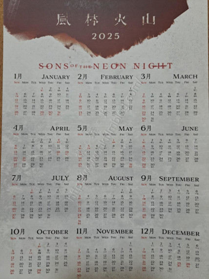 至於後方則為電影《風林火山》的2025年年曆咭。