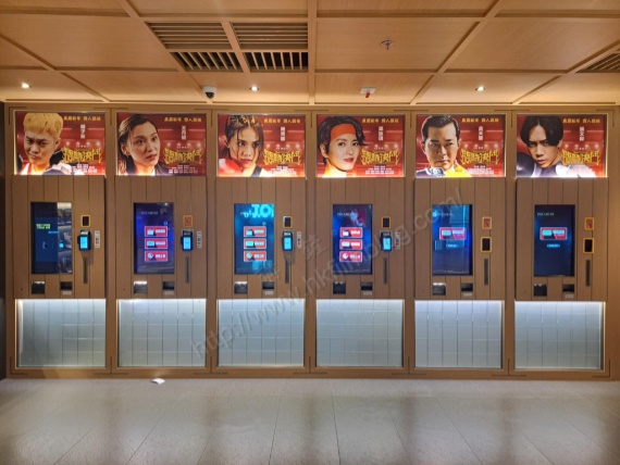 上圖所見,便是「講。鏟。片」情報人員日前於九龍站Premiere Elements戲院大堂所攝,可以看到戲院大堂六部自助票務機位置的上方廣告位置,變成了電影《臨時劫案》的宣傳專區,而六個宣傳位置均為人物宣傳,由左至右分別為胡子彤、王丹妮、周秀娜、梁詠琪、古天樂及張文傑。