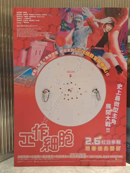 新映發行的真人版《工作細胞》將於二月六日在港上映,並且將於新春期間推出優先場。而上圖所見,則是「講。鏟。片」情報人員日前在其中一間戲院所攝,可以看其電影的宣傳品。