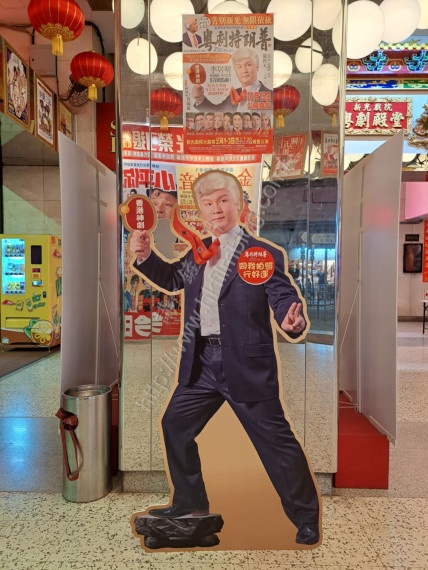 不過最為特別的,要算是大堂出了龍貫天於《粵劇特朗普》的造型紙板,然後還寫上「同我拍照行好運」的字眼。