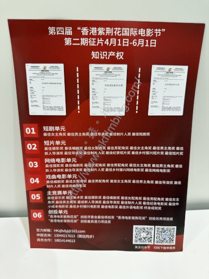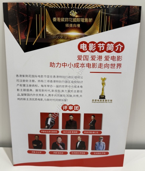 後方的資料則更有趣,聲稱已是第四屆「香港紫荊花國際電影節」,並且安排於四月一日至六月一日徵集電影,並分為六個單元。不過問題卻是,明明聲稱是香港電影節,但是卻沒有任何公佈,而且聯絡電話也是中國大陸的手機號碼。如斯的電影節,實在是耐人尋味。