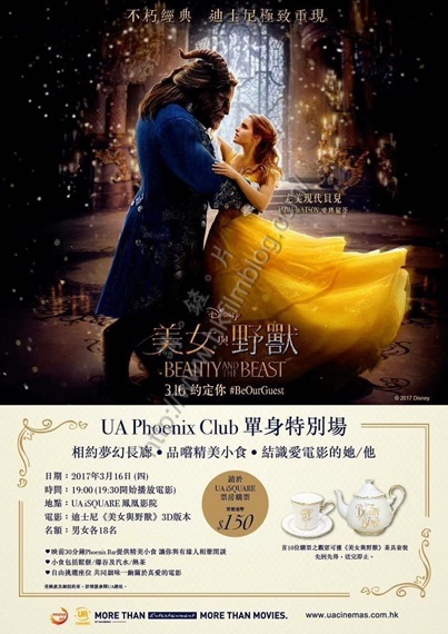 這幾年來除了2月14日情人節以外,很多商家努力開拓3月14日白色情人節市場,其實根據日本人的分類,情人節是可以過一整年的,UA戲院也藉著3月16日(好像比白色情人節晚了兩天)上映的迪士尼真人電影《美女與野獸》跨界開展了極速約會(Speed Dating)的業務。