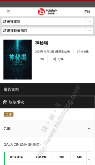 過去一、兩年間,不少發行商也會跟戲院合作,推出電影神秘場,讓觀眾以一個較優惠的價錢,先得觀看未開畫的電影,而觀眾每每要到開場才得悉放映的電影。而繼香港亞洲電影節後,百老匯院線將於下周再度推出神秘場。