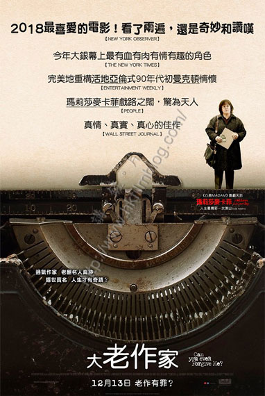 近年來每年九月的多倫多國際電影節成了不少秋、冬季擬在北美上映荷里活電影造勢之地,當中既有電影反應不似預期,亦有電影反應較想像為佳。部份電影如《登月第一人》又或是《美麗男孩》因演員陣容先行在港上映,但亦有一些發行量不多的電影,水準一點也不低。當中的驚喜之一,便有這部《大老作家》(Can You Ever Forgive Me?)。