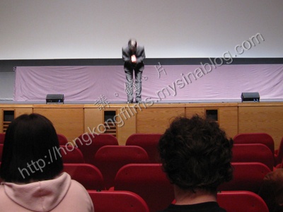短片播畢後,又來一輪大合照,大家可會留意前排中間合照的,還包括香港國際電影節執行總監邵淑慧及藝術總監李焯桃,拍照時間已是七時四十五分。鏡頭前兩人展現笑容,跟戲院場內等得鼓躁的觀眾成強烈對比,未知兩人對於電影節需要尊重觀眾並應準時開場的元素放到何處呢?