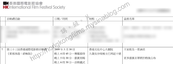 從上圖所見,電影節給傳媒通告是於「晚上」四時四十五分開始接待,五時半嘉賓進場,並於六時半舉行首映儀式。